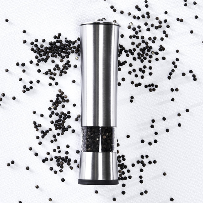 Sett set består av 2 elektroniska kryddkvarnar. Dom har genomskinliga behållare som visar innehållet samt en lampa som lyser vid malning. Så länge du håller med knappen på kvarnens ovansida så malen den och lampan lyser. En perfekt liten hjälpreda i köket som gör det lätt att mala exempelvis pepparkorn. Drivs av 4 st 1,5v AA batterier – medföljer ej.