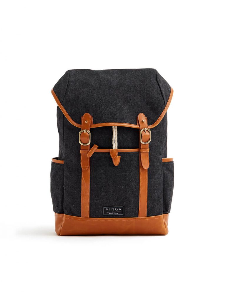 Backpack i stentvättad canvas med detaljer i skinnimitation. Modellen har ett vadderat fack för datorn och fungerar lika bra i skogen som i den urbana djungeln.