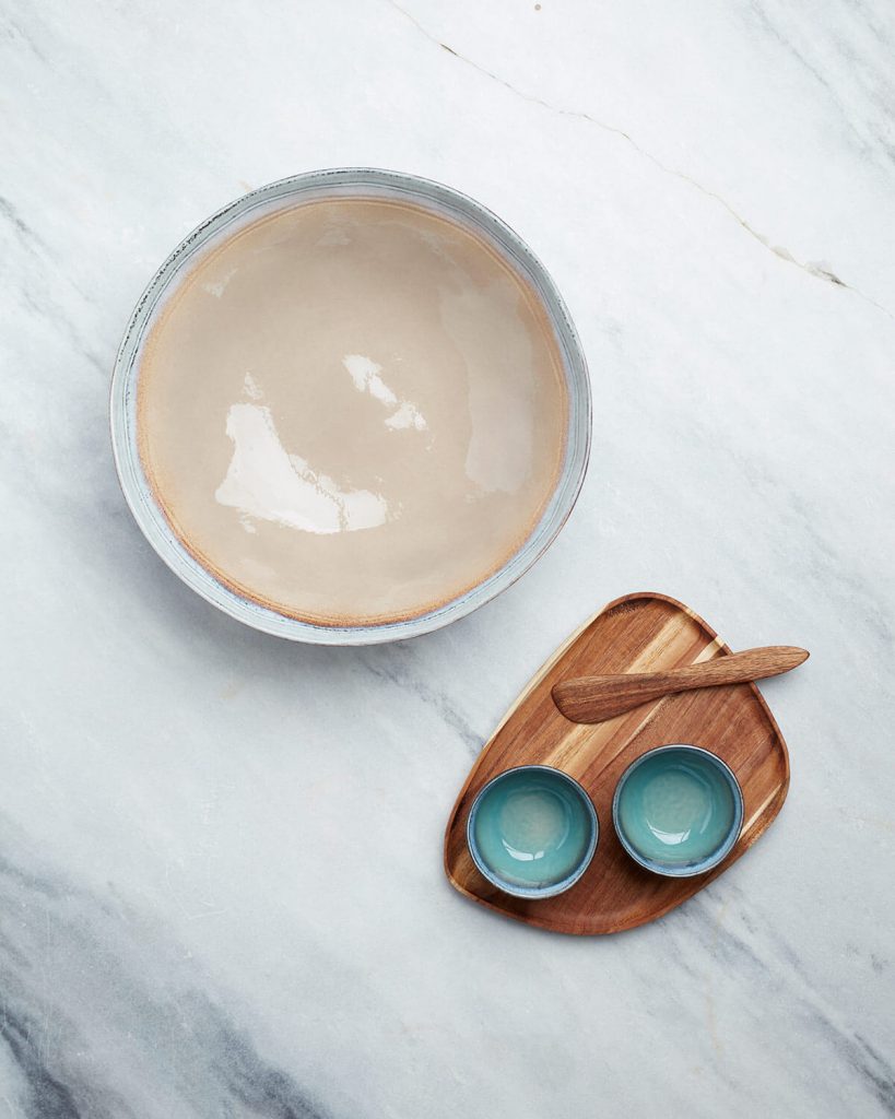 Vackert serveringsset som inkluderar två skålar och ett träfat. Passar utmärkt för småplock som tapas eller till sillen på midsommar. Härlig serveringsskål i stengods med en högre, handgjord, kant som därför blir elegant ojämn. Perfekt till en underbar nudelsallad eller som varför inte servera en pastarätt. Naturligtvis diskmaskinssäker. 30x9cm. Japanskt möter skandinaviskt, rustikt möter modernt. Nomimono har sin källa i naturen och jorden runt om oss, vilket gett inspiration till denna rustika serie i naturnära, jordiga toner där inget objekt är det andra likt. Varje produkt är skapat i handgjort stengods som glaserats tre gånger för rätt finish. Det gör varje produkt unik, vilket också är en stor del av Nomimonos charm. Samlarobjekt för en jordnära och inspirerande servering.